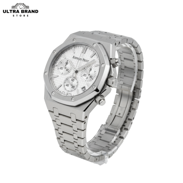 Experience luxury engineering with the Royal Oak 26240 Hyper Clone. This model features a 41mm stainless steel case, iconic octagonal bezel with hex screws, and a refined White/Silver Grande Tapisserie dial for a premium, authentic look.
