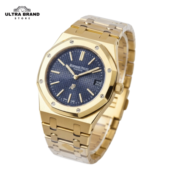 The 39mm case is ultra-thin, showcasing elegant proportions, while the blue dial adds a striking contrast against the yellow gold. The watch is powered by the 1:1 Cloned Audemars Piguet 2121 Movement, precisely replicated for flawless performance and authentic operation. The sapphire crystal front ensures durability and clarity, and the clasp mirrors the genuine design for a complete, realistic experience.