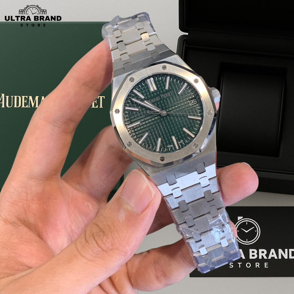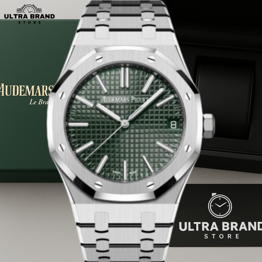 Experience the pinnacle of luxury with this top-tier Audemars Piguet Royal Oak Replica, crafted for collectors and enthusiasts alike. The 41mm stainless steel case houses a vibrant green “Tapisserie Evolutive” dial, complemented by index hour markers and luminescent Royal Oak hands for optimal readability. Powered by an exact 1:1 Clone 4302 movement, this replica celebrates the 50th Anniversary of the Royal Oak, featuring the engraved “50 Years” on the movement. Combining elegance and precision, it offers hours, minutes, seconds, and date functions, a 48-hour power reserve, and 50 meters water resistance.