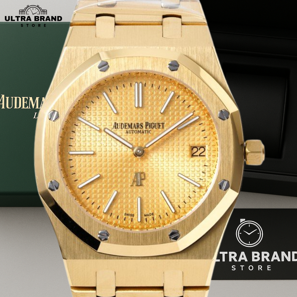 Discover the top-quality 1:1 Audemars Piguet Swiss Replica, the Royal Oak Jumbo 15202 Yellow Gold Champagne Dial. Crafted from 904L stainless steel with full yellow gold finish, this super copy perfectly mirrors the authentic Royal Oak in every detail.