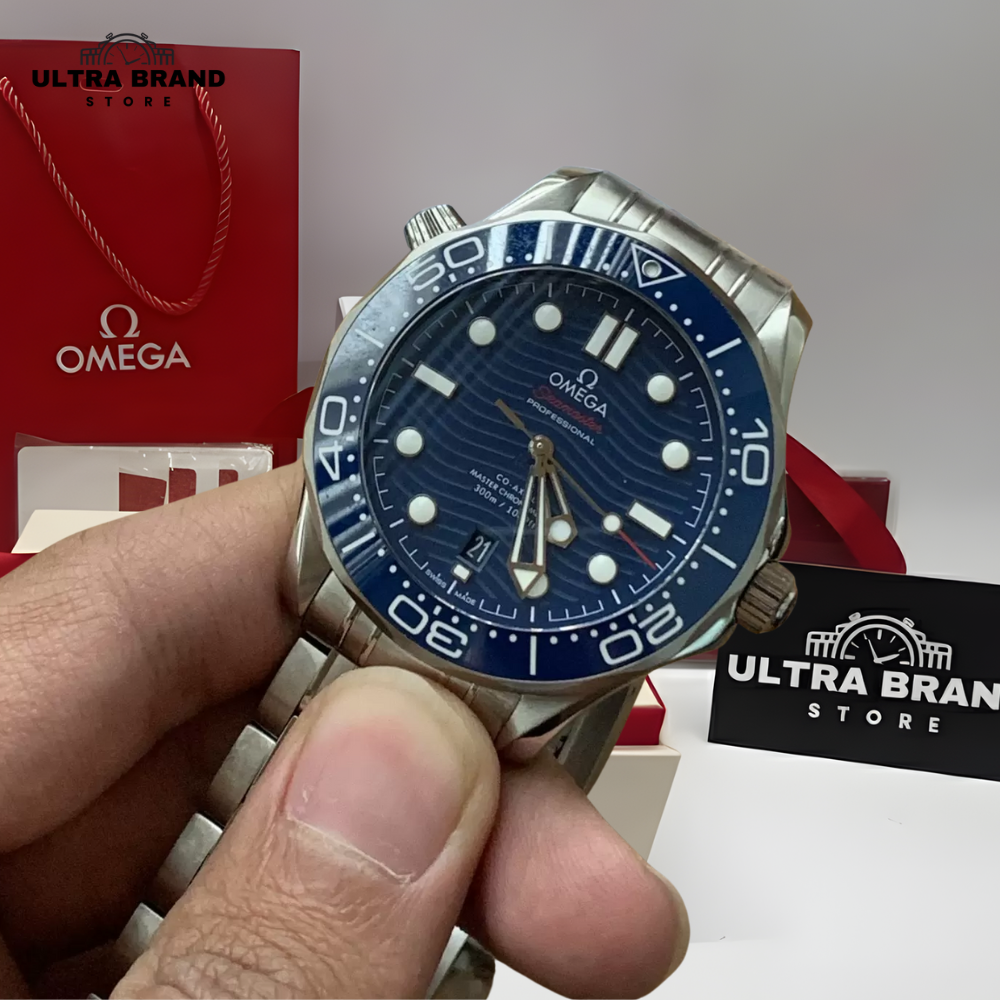 Experience the legendary ocean heritage with the Omega Seamaster Diver 300 Co-Axial Blue Super Clone. This 1:1 replica features a 42mm stainless steel case with blue ceramic bezel and white enamel diving scale, complemented by a polished blue ceramic dial with laser-engraved wave patterns. The skeleton hands and raised rhodium-plated indexes filled with white Super-Luminova ensure perfect readability. Powered by the cloned Omega 8800 co-axial movement with 48-hour power reserve, this replica offers hours, minutes, seconds, and date functions. Finished with a stainless steel bracelet and optional blue rubber strap, plus a helium escape valve and uni-directional rotating bezel, this Seamaster clone combines precision, durability, and timeless style.