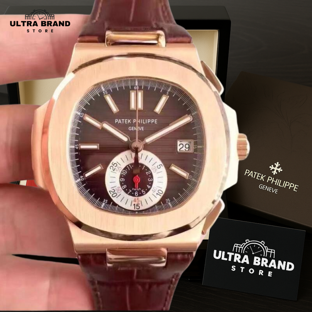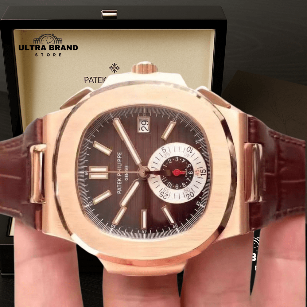 The rose gold bezel and scratch-resistant sapphire crystal with AR coating provide durability and elegance, while the brown leather strap with deployment clasp ensures a secure and comfortable fit. Water-resistant and crafted with high-quality materials, this Super Clone Patek Philippe 5980R is a flawless combination of precision, style, and luxury.