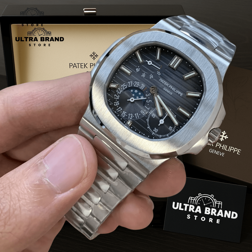 Discover the elegance and complexity of the Patek Philippe Nautilus 5712/1A Super Clone—a top-quality 1:1 replica that faithfully mirrors the original. Crafted with a three-part 904L stainless steel case, this Swiss clone features a sapphire-crystal caseback and front, a screw-down crown, and a moon-phase corrector push-piece on the side.
