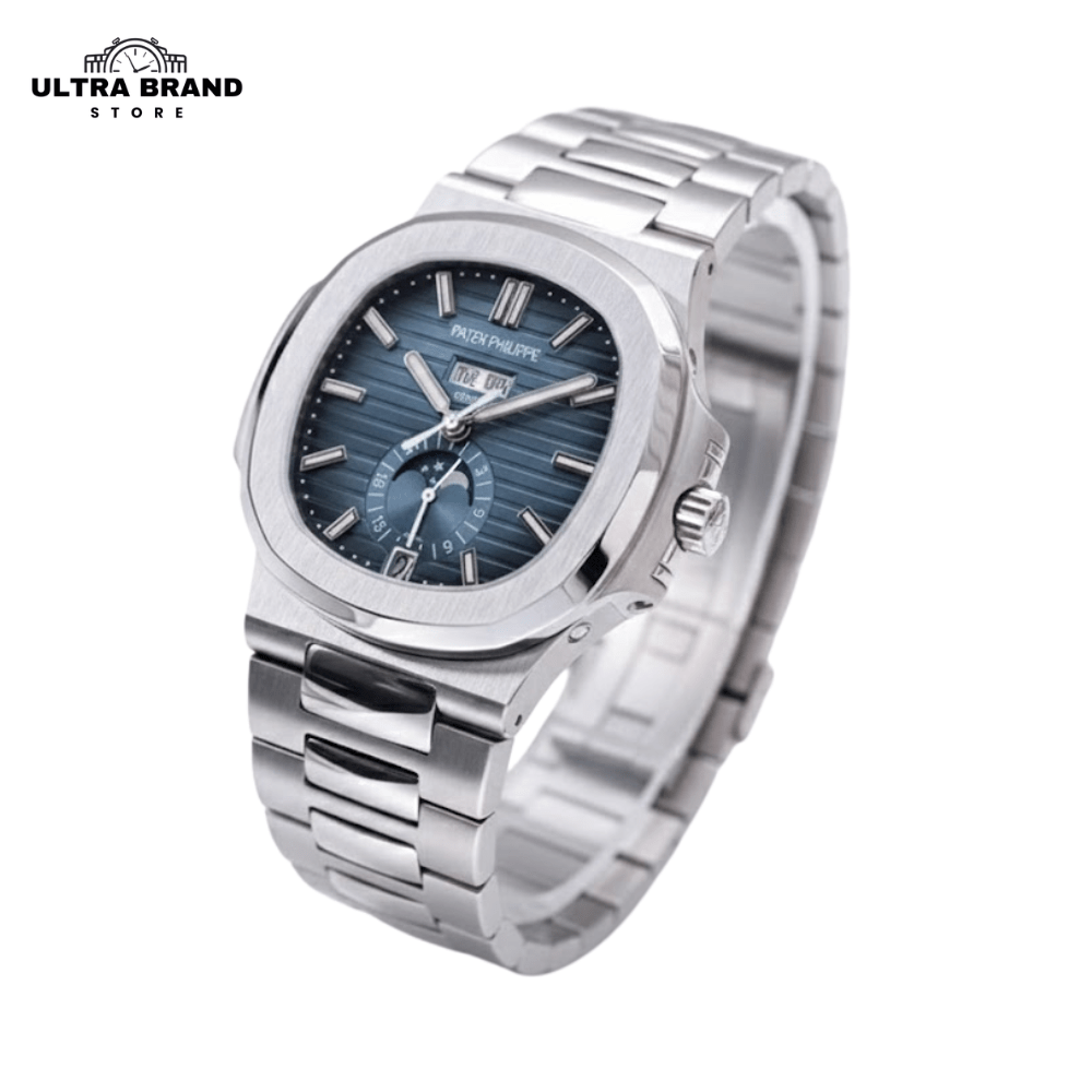 The Nautilus design, inspired by a ship’s porthole, features a rounded octagonal bezel and integrated bracelet, creating a seamless and sophisticated silhouette. The watch is fitted with a Swiss ETA 324S cloned automatic movement, offering precise timekeeping and a fully functional annual calendar complication.