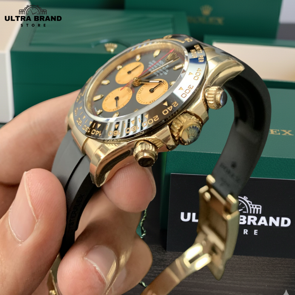 This Rolex Daytona 116518 Paul Newman Yellow Gold Oysterflex Super Clone is one of the most accurate and high-end Daytona replicas available online.