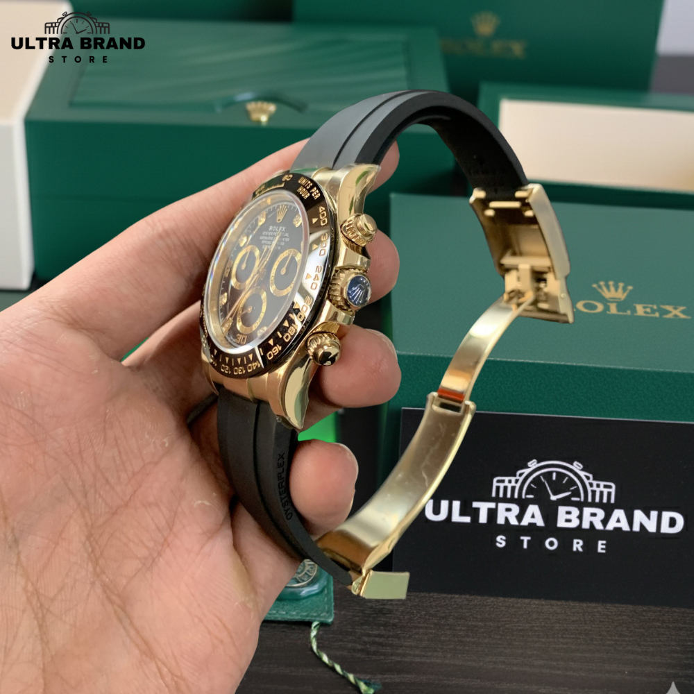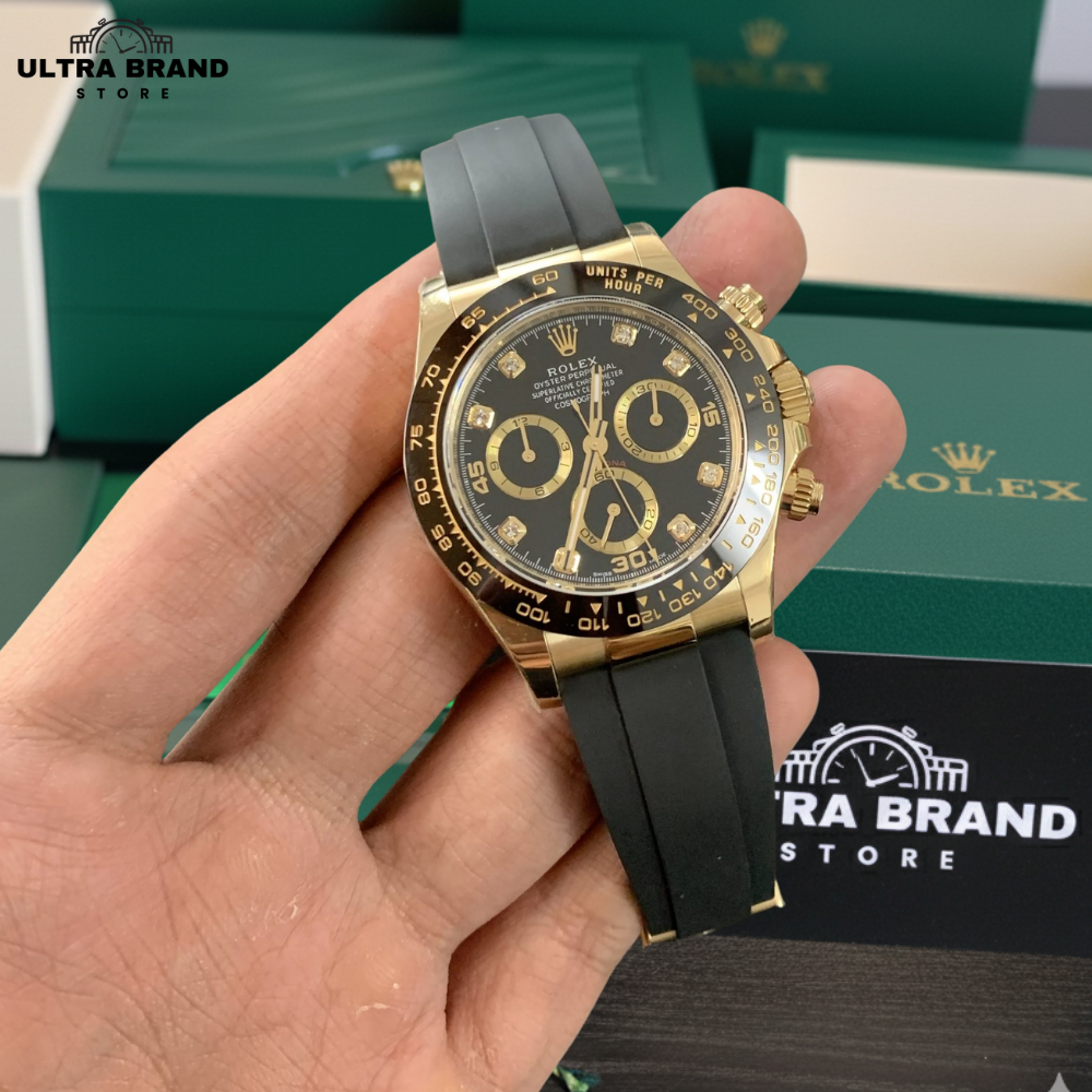 Rolex Daytona Yellow Gold Oysterflex Black Diamond Dial Super Clone 4130 Movement