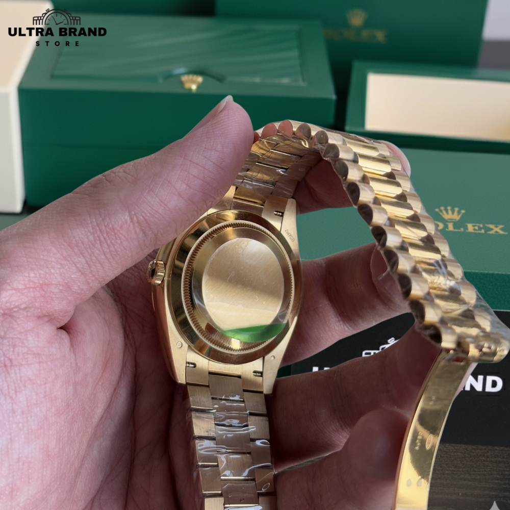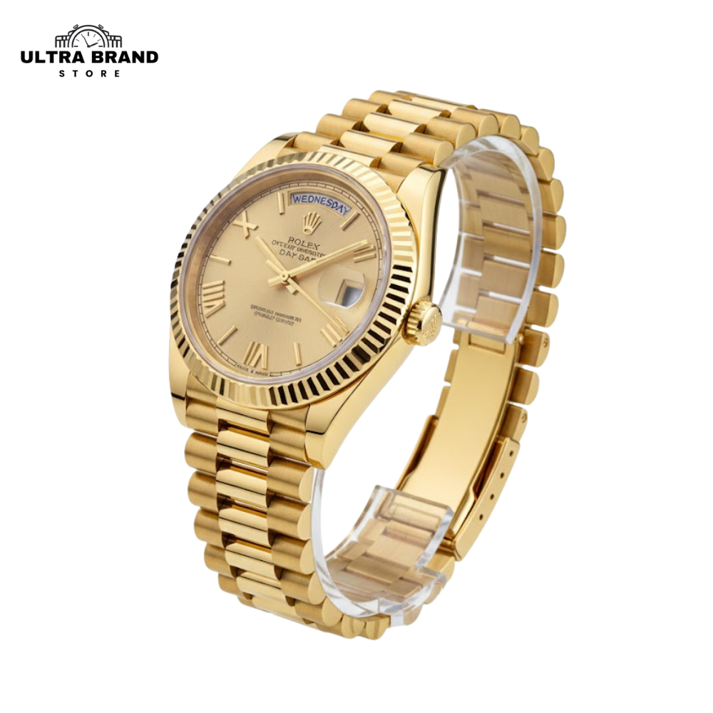 Experience luxury and precision with the Rolex Day-Date 40 Full Gold Super Clone in a stunning champagne dial with gold Roman numerals. Crafted from 904L stainless steel with gold wrap, this 1:1 Swiss clone captures the essence, weight, and shine of the original, offering the ultimate high-end Rolex replica experience.
