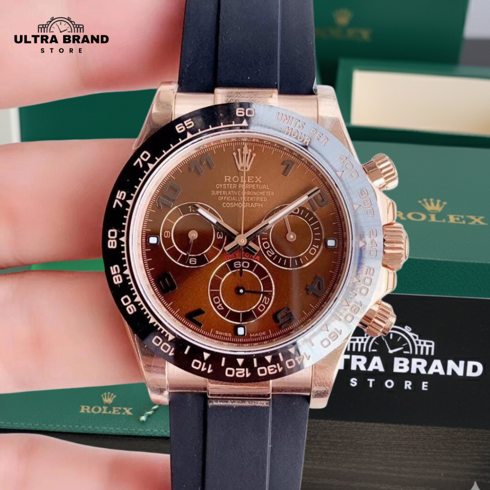 Experience the pinnacle of luxury replica watches with the Rolex Daytona Oysterflex 116515LN Chocolate Dial AAA Replica. Ultra Brand Store brings you a super clone Daytona that mirrors the original down to every detail, making it nearly impossible to tell the difference. Perfectly functioning pushers and chronograph ensure an authentic experience.