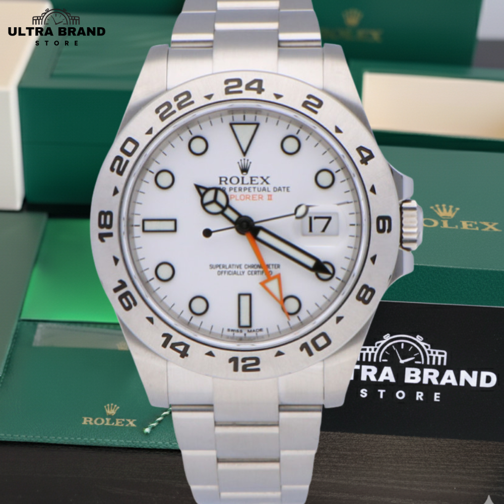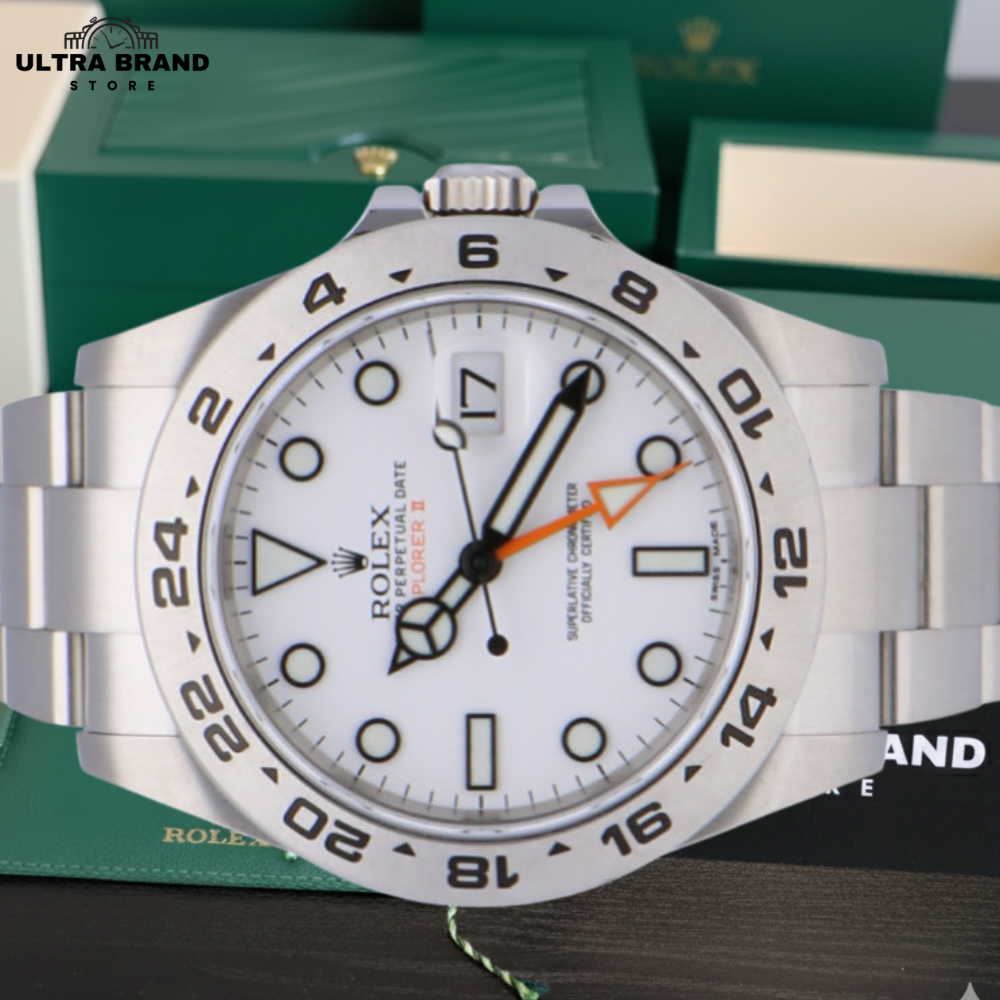 The Rolex Oyster Perpetual Explorer II ref.216570 with its striking Polar (white) dial was originally released in 2011, quickly becoming a favorite for adventurers and GMT lovers. This mirror-grade super clone offers collectors a premium alternative to the more common Submariner or Daytona, while maintaining the bold and sporty identity of the Explorer II.