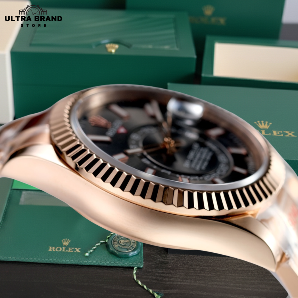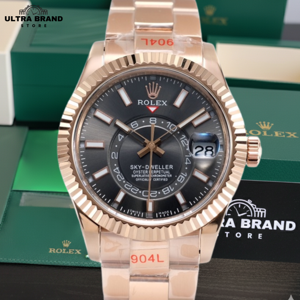 Experience the elegance of the Rolex Sky-Dweller with this high-end Swiss clone in rose gold. Featuring a 42mm 904L stainless steel case with rose gold plating and a rhodium dial, this Sky-Dweller replica combines luxurious aesthetics with functional sophistication. Designed with precision, it replicates every detail of the original Sky-Dweller, including the annual calendar and rotating GMT disc, offering collectors a perfect 1:1 experience.