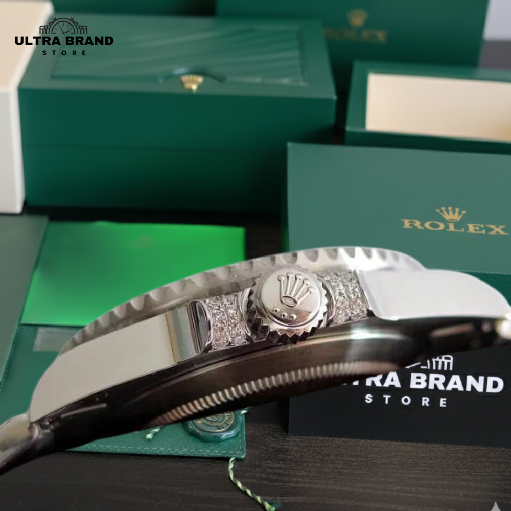 The Rolex Submariner 116610LN replica is a luxurious iced-out clone with a black dial and fully diamond-studded bracelet and bezel. Crafted from high-quality 316L stainless steel, this AAA grade Submariner replica delivers flawless aesthetics and performance.