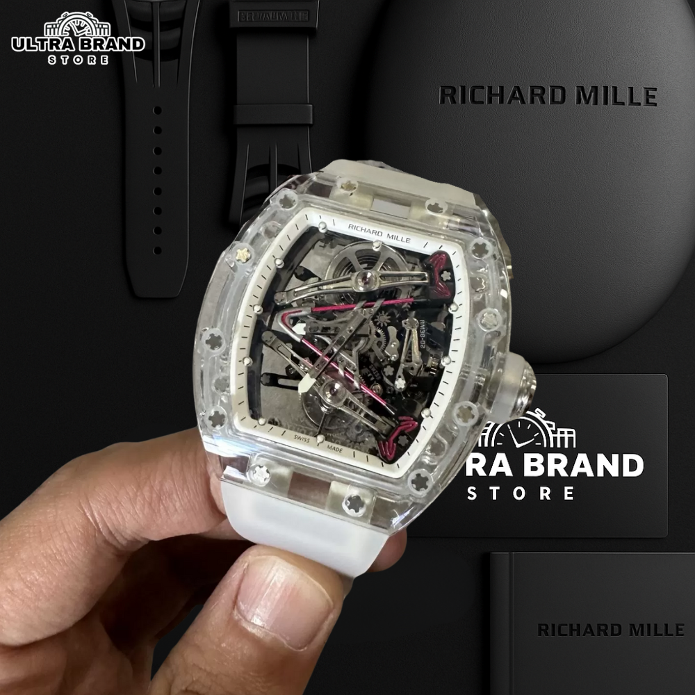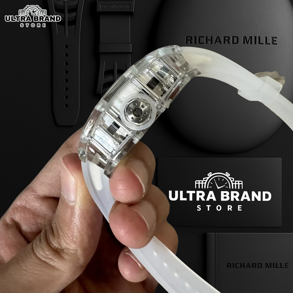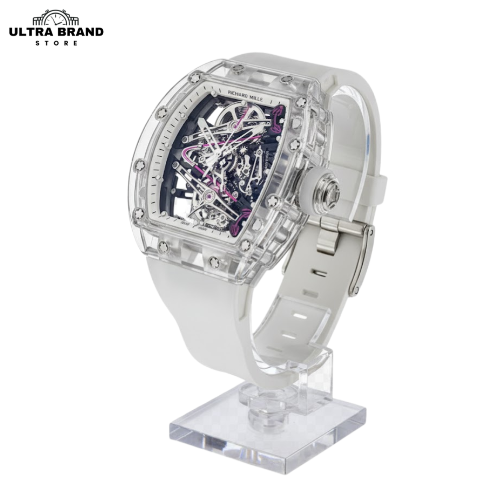 The Richard Mille RM 38-02 Bubba Watson Sapphire Super Clone is a striking blend of sporty elegance and high-end craftsmanship. Crafted entirely from sapphire with an asymmetrical, ladder-shaped case, this 1:1 replica mirrors the original RM 38-02 in both design and function.