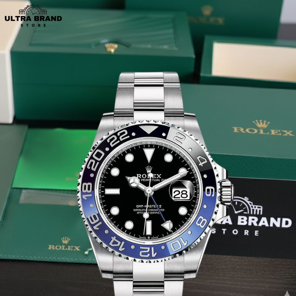 Experience the iconic Rolex GMT Master II “Batman” in premium superclone quality. Known for its distinctive black and blue Cerachrom bezel, the Batman symbolizes day and night, making it one of the most sought-after Rolex GMT models.