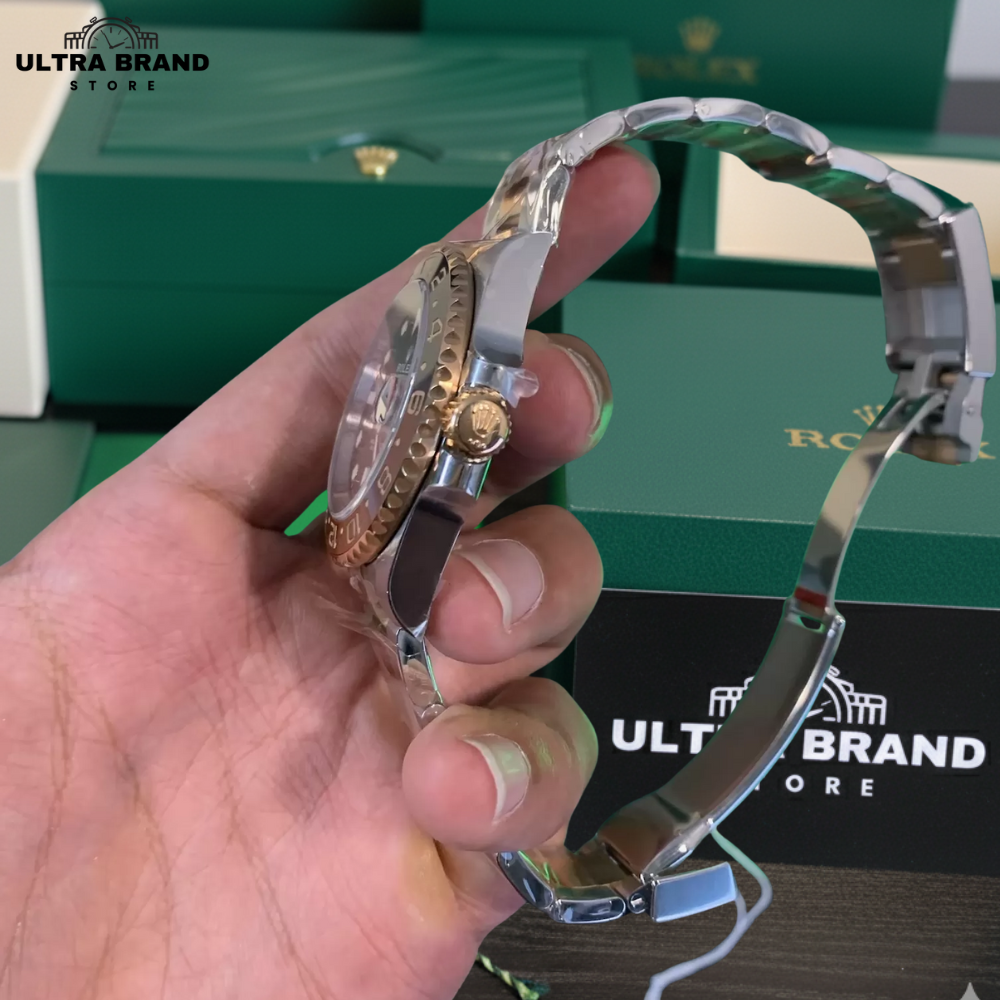 Designed with a two-tone 904L stainless steel + rose-gold plated case and bracelet, this piece delivers the correct shine, solid weight, and premium finishing of an original luxury watch.
